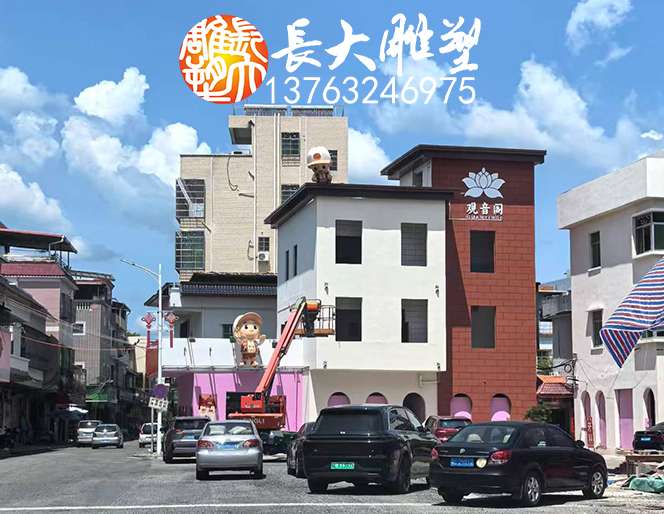 惠州觀音閣網(wǎng)紅打卡地,玻璃鋼彩繪公仔雕塑東莞雕塑制作制作,表面效果獲得客戶一致認(rèn)可。